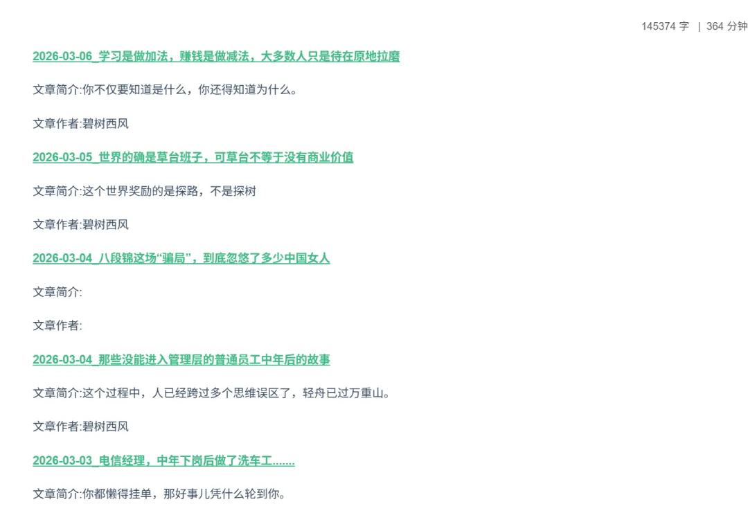 公众号爱在冰川/记忆承载/莫言/半佛仙人/半佛仙人/猫笔刀/渤海小吏公众号历史文章pdf合集,持续更新,导出文章阅读数excel