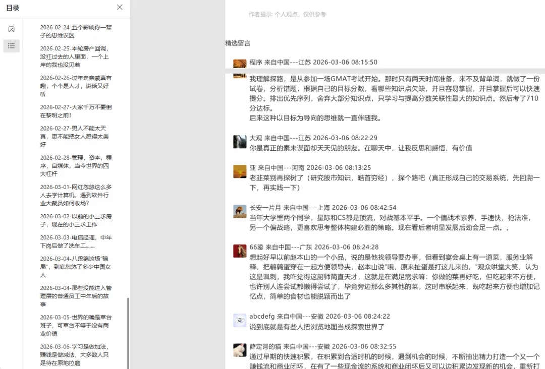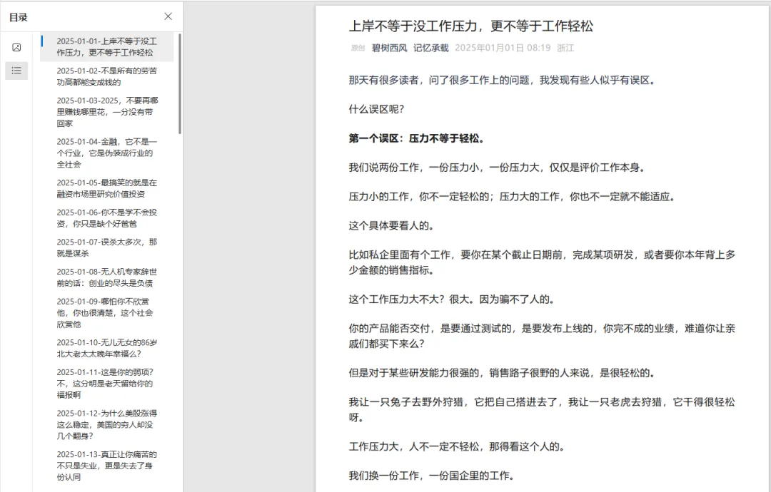 另外为了方便查看所有的历史文章,我同步到了博客方便在线查看 为了方便看公众号文章,2026年我搭建了个博客,在线看公众号的所有历史文章,想看哪天的文章一秒就能找到,不用在手机上翻了,就不用再翻手机找历史文章了,想找哪篇文章在浏览器上ctrl+f搜索就行,1秒就能找到: