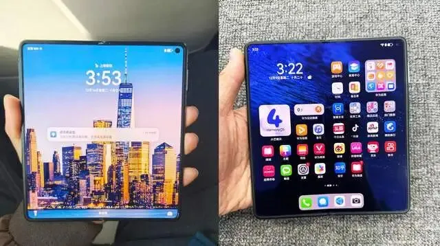 摊开后的平板电脑。打开MateX3,它的屏幕放大到7.85英寸,2496*2224,精度更高,显示清晰锐利。内平和外屏一样,虽然大,也设置了独立的挖孔屏,放在屏幕右上角,像素也是800w。摊开后的内屏,边框与外屏差不多,显示比例会更大,相当于左右双屏组合起来的,因而桌面布局也是如此。来到APP的页面后,显示更广,等于是平板电脑的布局,支持平行世界和快捷分屏,尤其在看视频、阅读文章时,视野更好。单手握持,MateX3的内屏机身更薄,5.3mm几乎无感。