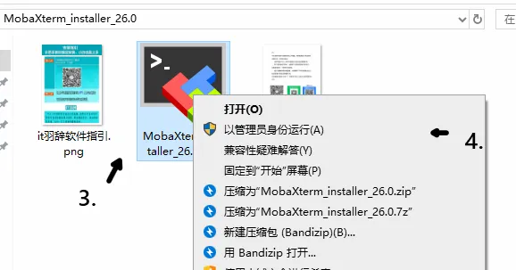 3.点击MobaXterm安装包,4.右键以管理员身份运行