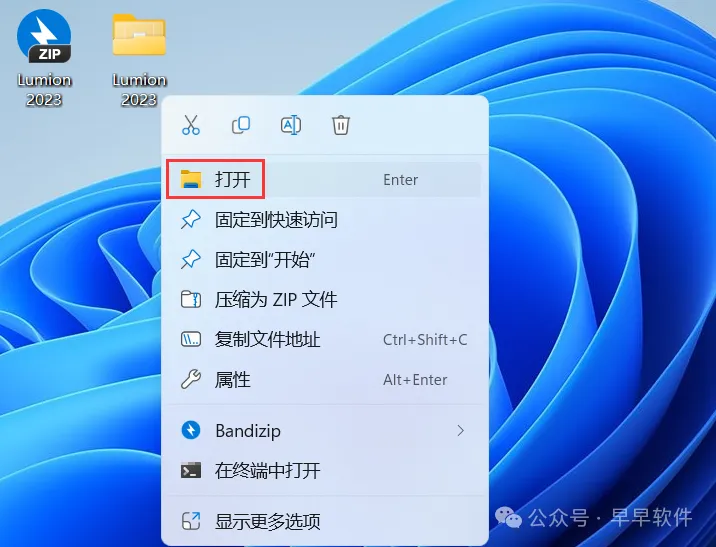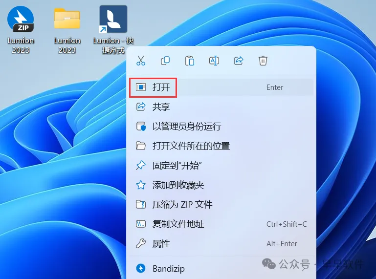 26、回到桌面,右键桌面上的【Lumion 2023软件图标】,点击【打开】