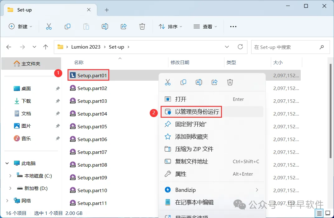 4、找到【Setup.part01】应用程序,右键选择【以管理员身份运行】它