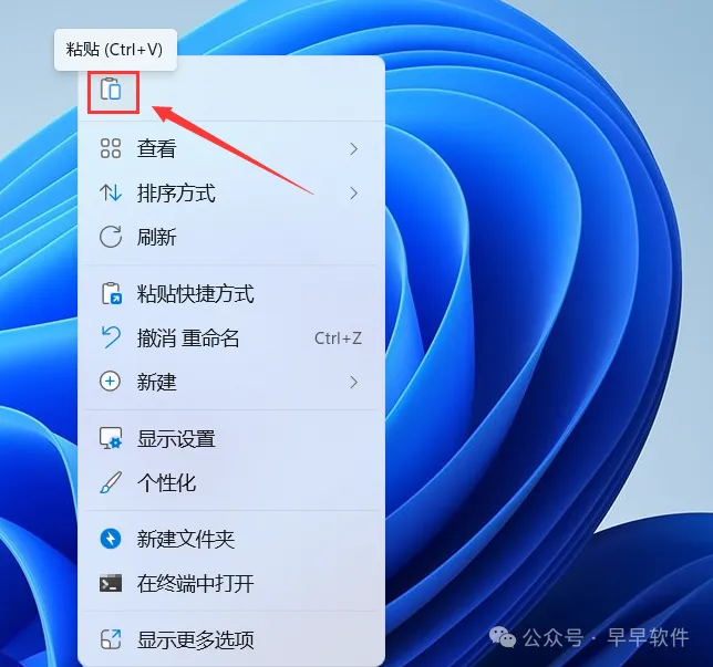 16、回到桌面,右键桌面的空白处,点击【粘贴按钮】