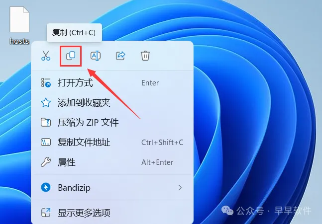 21、回到桌面,找到【hosts】文件,右键点击【复制按钮】