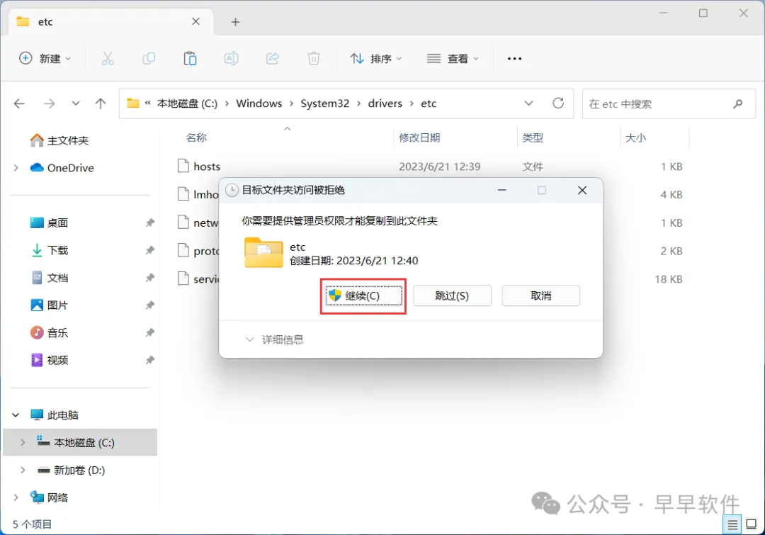 15、依次打开如下路径:C:/Windows/System32/drivers/etc,找到【hosts】文件,右键点击【复制按钮】