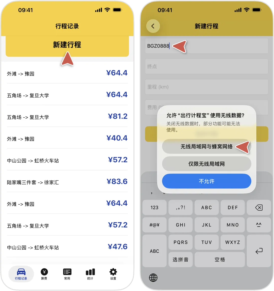 新建行程 - 第一行输入「