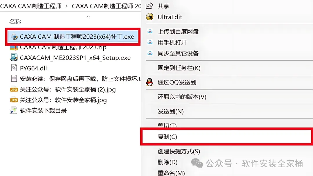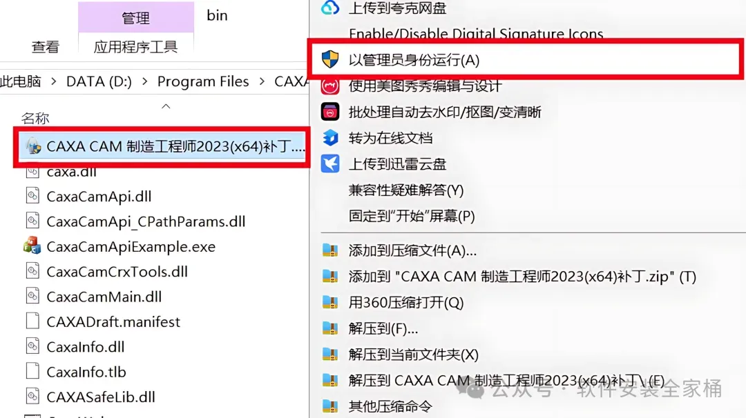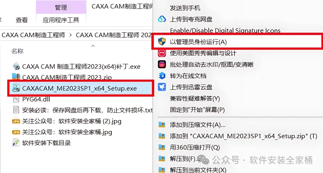1.下载CAXA CAM制造工程师 2023软件安装包到电脑上,右键选择【解压到当前文件夹】。