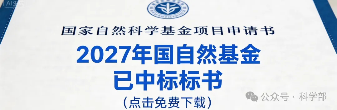 今天,科学部给大家免费分享:“2025年国自然标书中标清单+标书全文+杰青优青申报PPT”。点击下方《科研之地》公众号关注后发送“2025基金”即可免费获取: