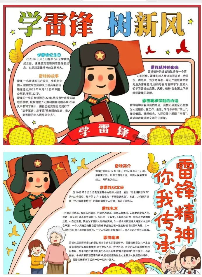 今天为大家整理了 10 款学雷锋纪念日主题手抄报模板,适合小学及幼儿园使用,也可直接用作小报、黑板报素材。