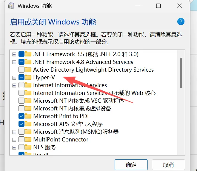 找到Hyper‑v相关的选项,全部打勾,然后重启电脑。