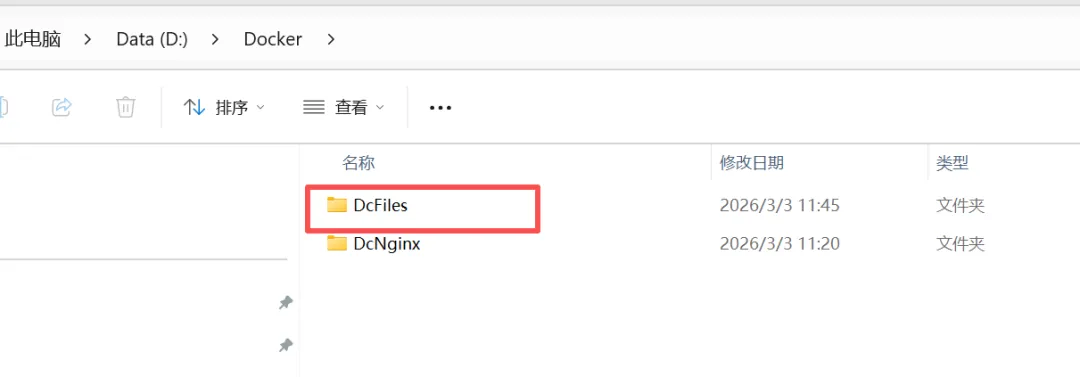 比如创建一个 D:\Docker\DcFiles的文件夹