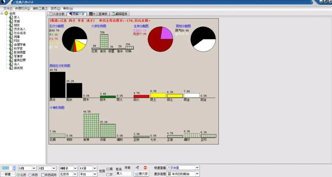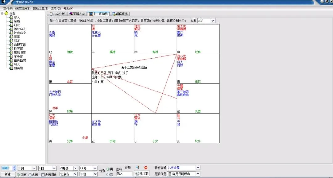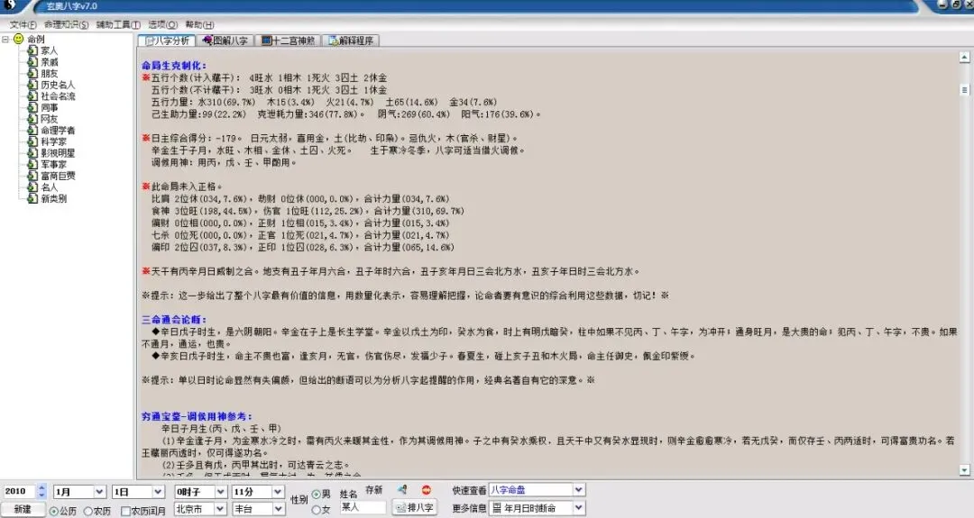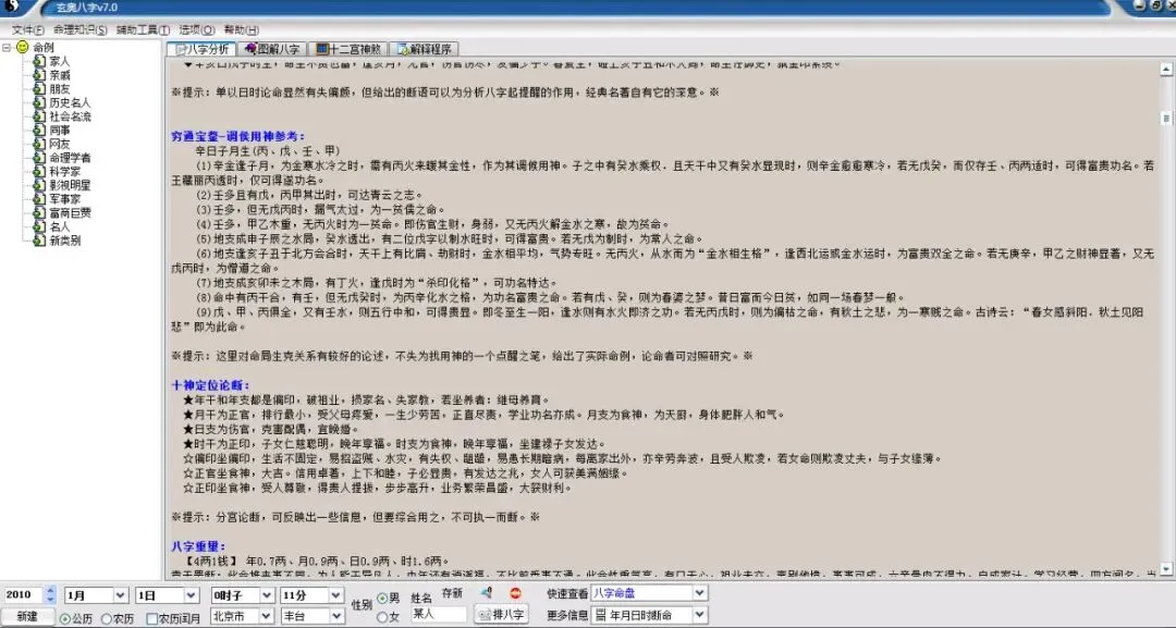 某人(18岁),北京市-丰台区出生公历:2010年1月1日0时11分(北京时间),星期五。
