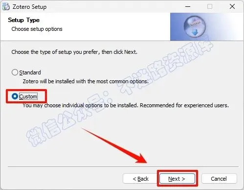 4.勾选“Custom”,点击“Next”