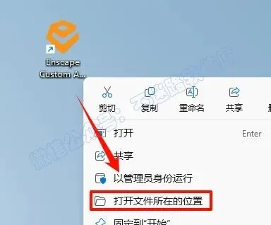 10.在桌面上找到”Enscape Custom Asset Editor“软件图标,鼠标右键点击“打开文件所在位置”