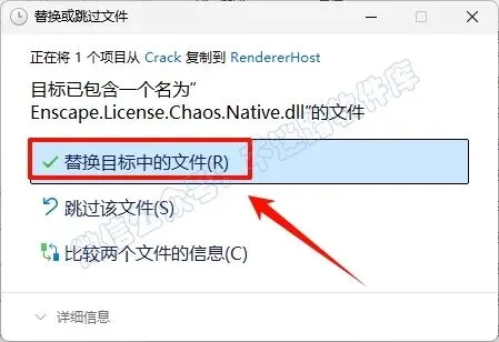 8.返回之前解压的“Enscape 4.16.0.1262”文件夹,双击打开“Crack”文件夹,选中“Enscape.License.Chaos.Native”文件,鼠标右键点击“复制”文件夹