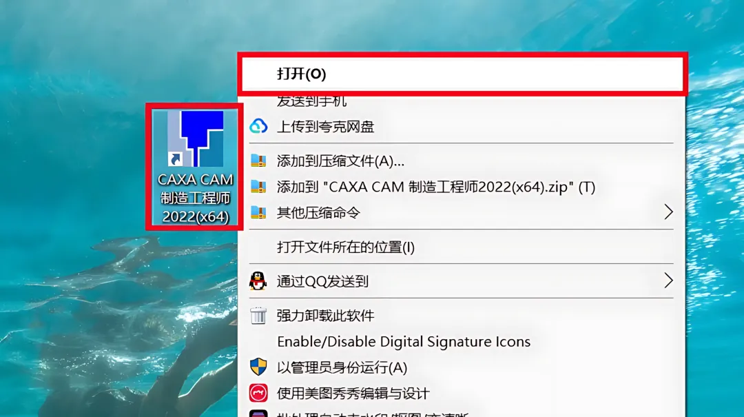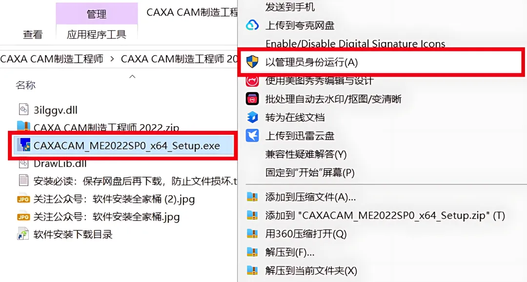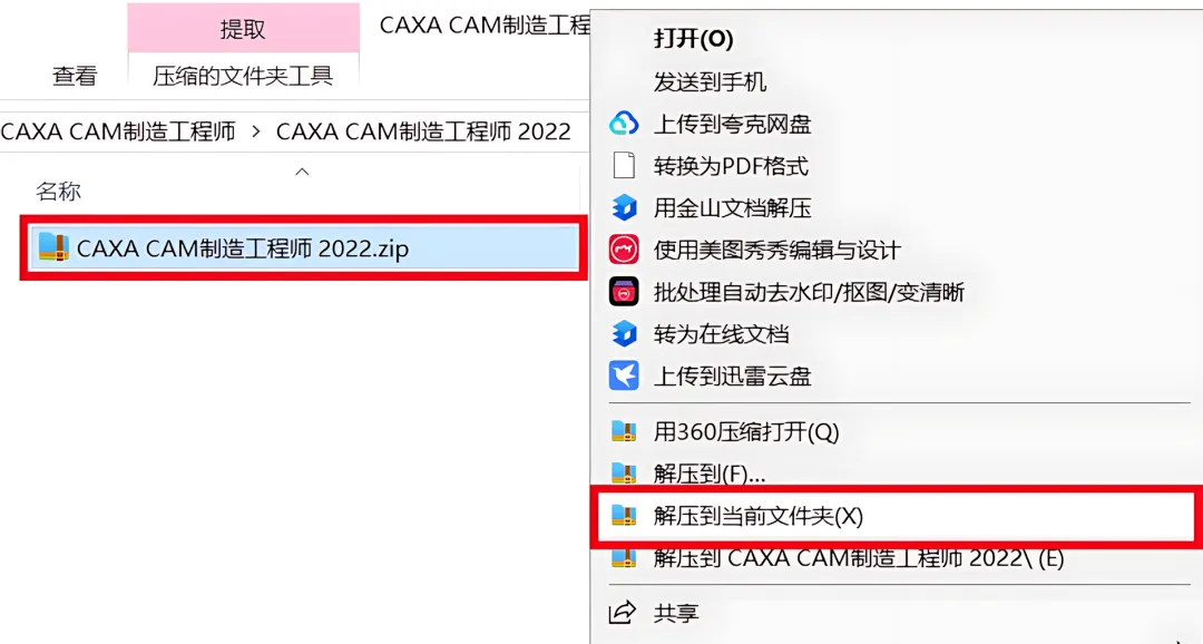 1.下载CAXA CAM制造工程师 2022软件安装包到电脑上,右键选择【解压到当前文件夹】。