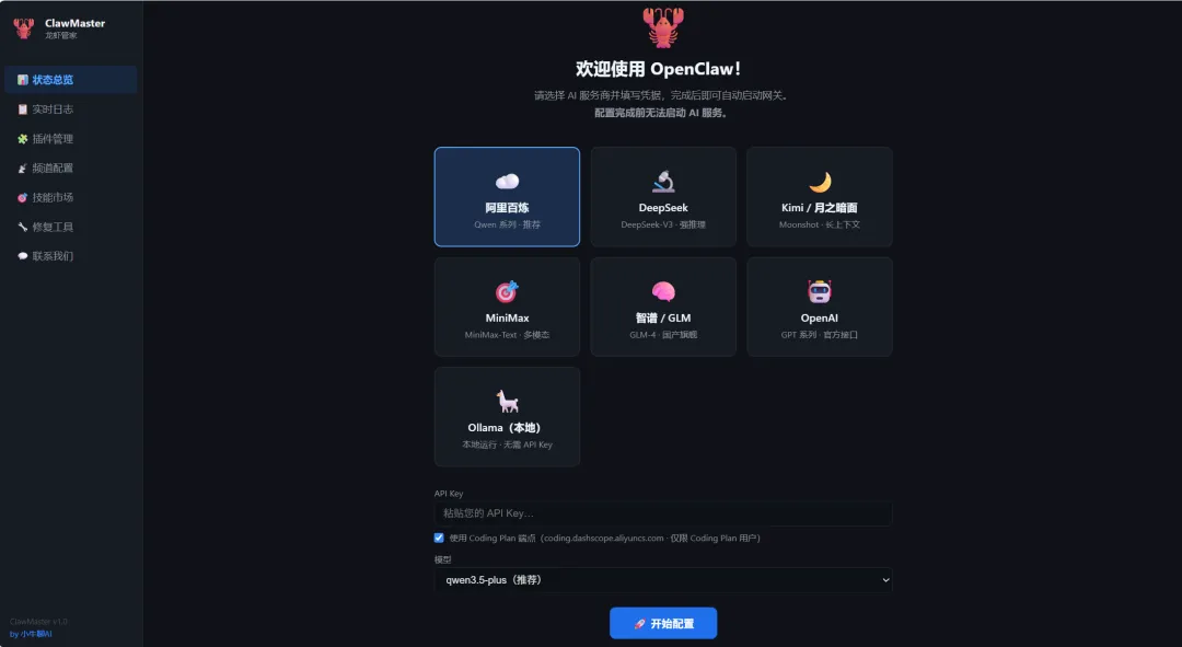 安装完成会自动启动 ClawMaster 龙虾管家,将来龙虾管家将是你管理和养殖龙虾的得力助手!