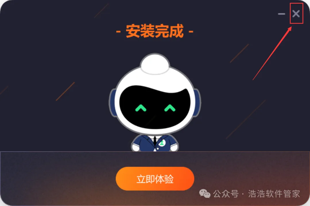 6、软件安装成功,点击右上角【关闭按钮】