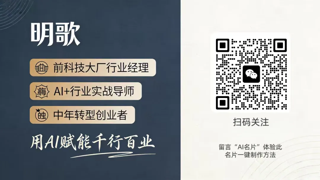 👉我是明歌,前科技大厂行业经理,一人公司/超级个体的 AI CEO,专注陪跑中小企业与超级个体实现 AI 商业进化。