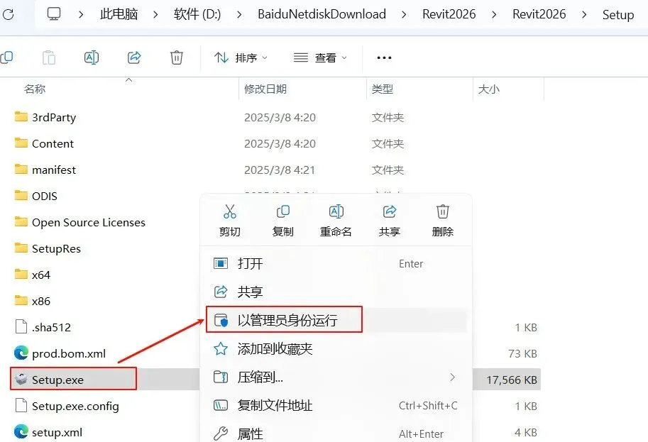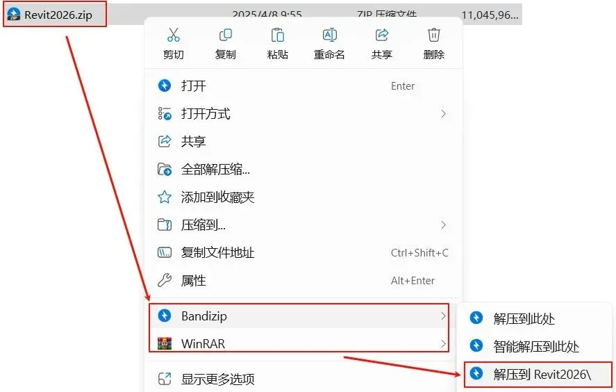1.选中下载好的安装包,鼠标右键解压到“Revit2026 ”文件夹