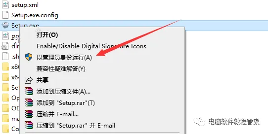 2,右键以管理员身份运行Setup安装程序
