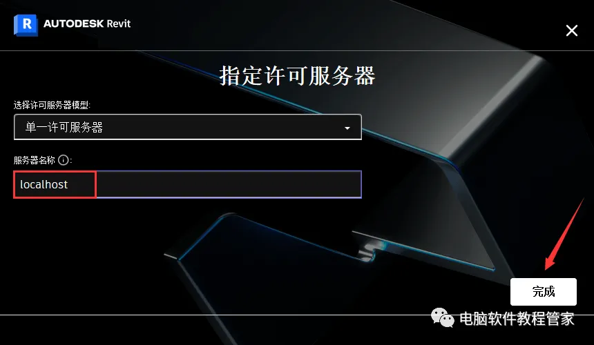 12 在使用网络许可栏点击【选择】,若有提示,输入【localhost】点击完成