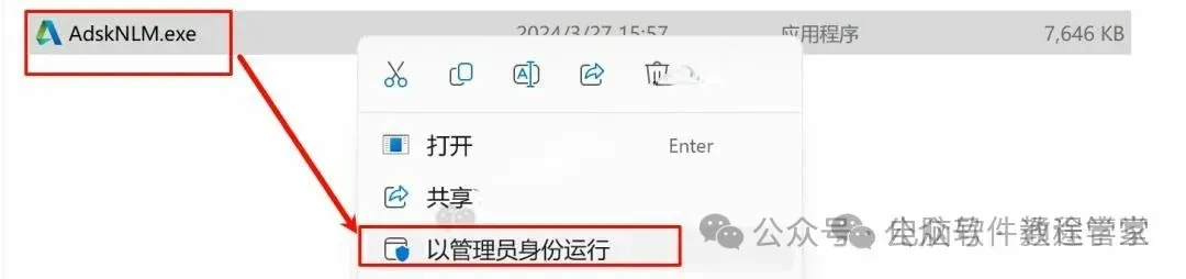 11.选中“AdskNLM.exe”,鼠标右键选择“以管理员身份运行”(运行过程中看不见,但屏幕会闪烁)