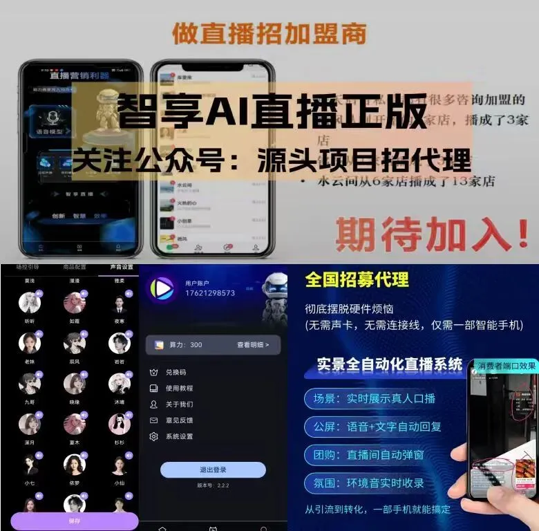 对于想做AI直播的朋友来说,最痛苦的不是内容创作,而是想省点钱随便找个破解版,结果直播间接连收到“违规录播”警告,甚至账号直接被封。毕竟谁都不想辛辛苦苦养的号,因为工具不靠谱一夜归零。想要解锁这一神器,务必认准智享AI直播唯一官方公众号“源头项目招代理”。