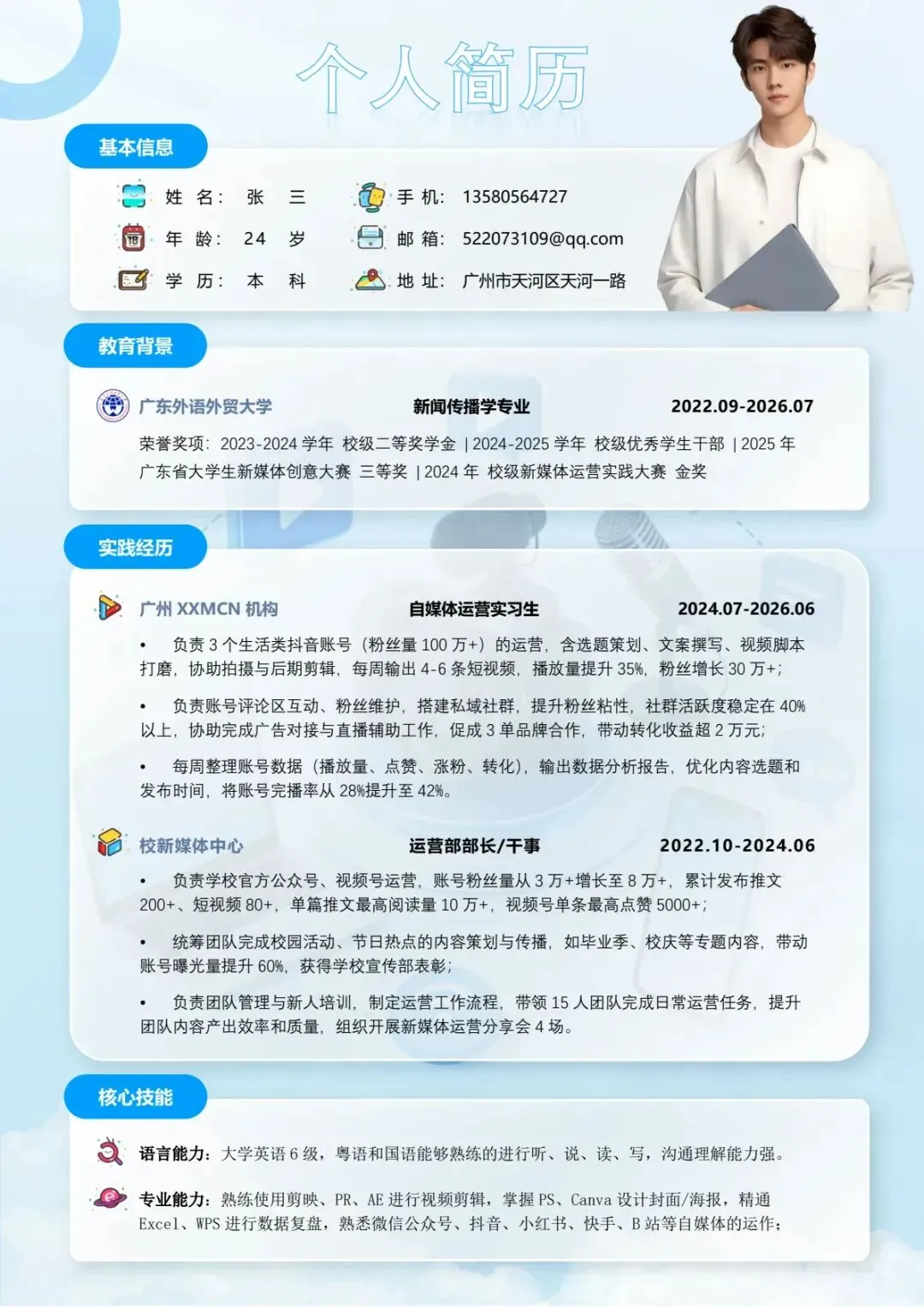 【应届生简历模版】新媒体运营(可下载)今天和同学们分享一个应届生简历模版(word格式),新媒体运营岗的,需要的同学可以在下方下载地址自行提取。模版下载:https://pan.quark.cn/s/2dfd387b5d2a提取码:Azvh