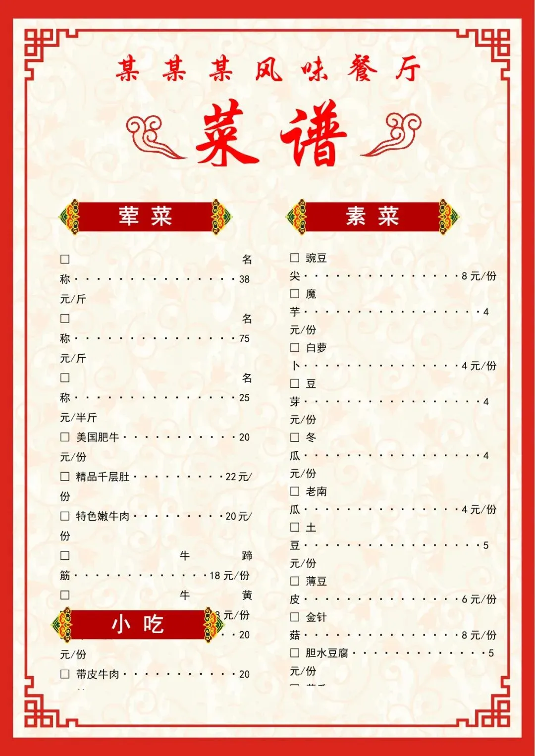 菜单模板