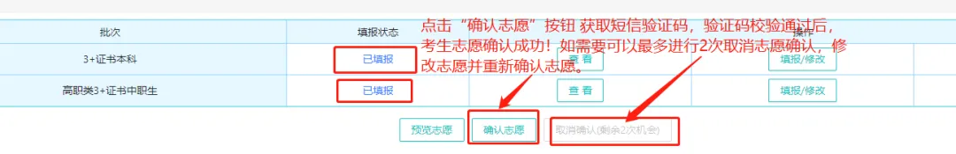 关于志愿修改:在规定时间内,在未进行网上志愿确认前可多次修改所填报的志愿;首次“确认志愿”后,如有需要可最多进行2次取消志愿确认,修改志愿并重新确认志愿的机会。