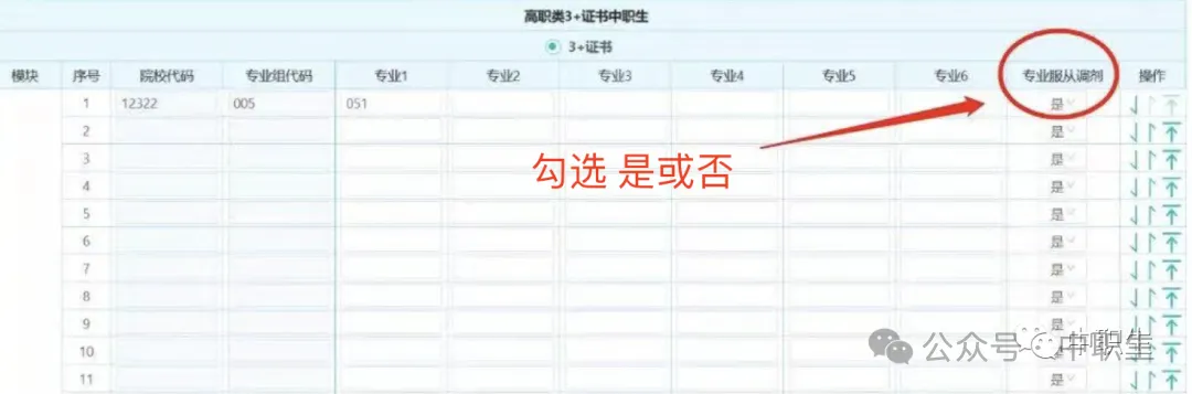 考生可自愿选择“是否服从院校内专业调剂”栏: