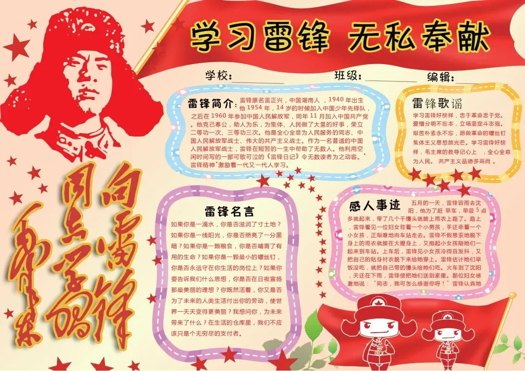 学雷锋主题手抄报85套模板含线稿