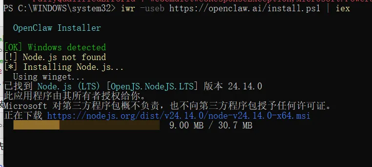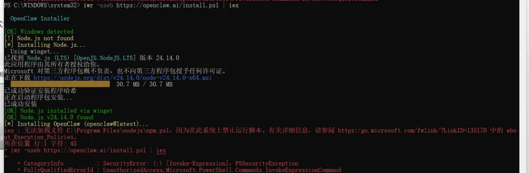 Windows原生对OpenClaw支持较弱,需先配置Node.js环境,全程用管理员权限打开PowerShell操作: