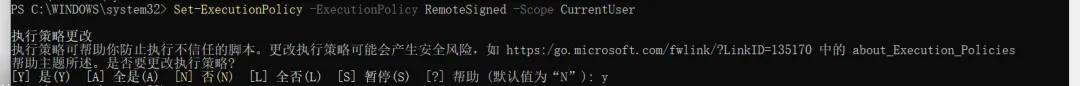 3、若遇执行策略报错,先执行以下命令再重新安装: