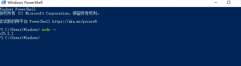 * 安装完成后,重启PowerShell,再次运行 `node -v` 确认版本符合要求。