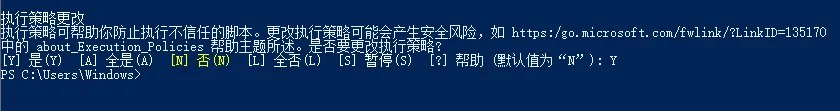 * 在管理员窗口中输入以下命令并回车,为当前用户解锁脚本权限: