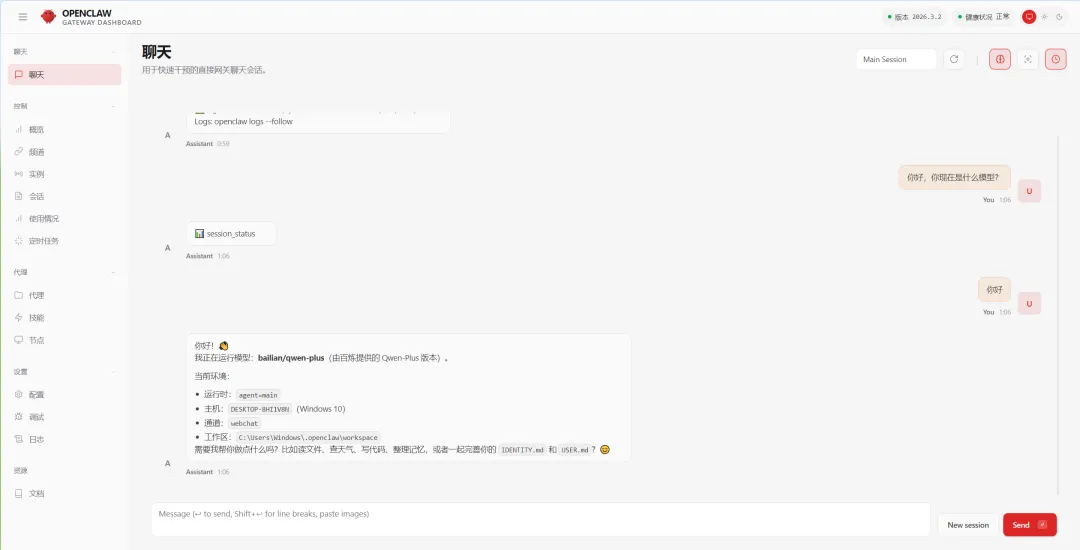 配置完成后,就可以启动OpenClaw了。