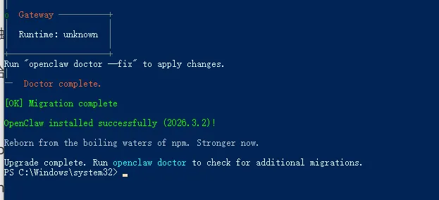 在PowerShell中输入以下命令,启动OpenClaw的心脏——Gateway服务: