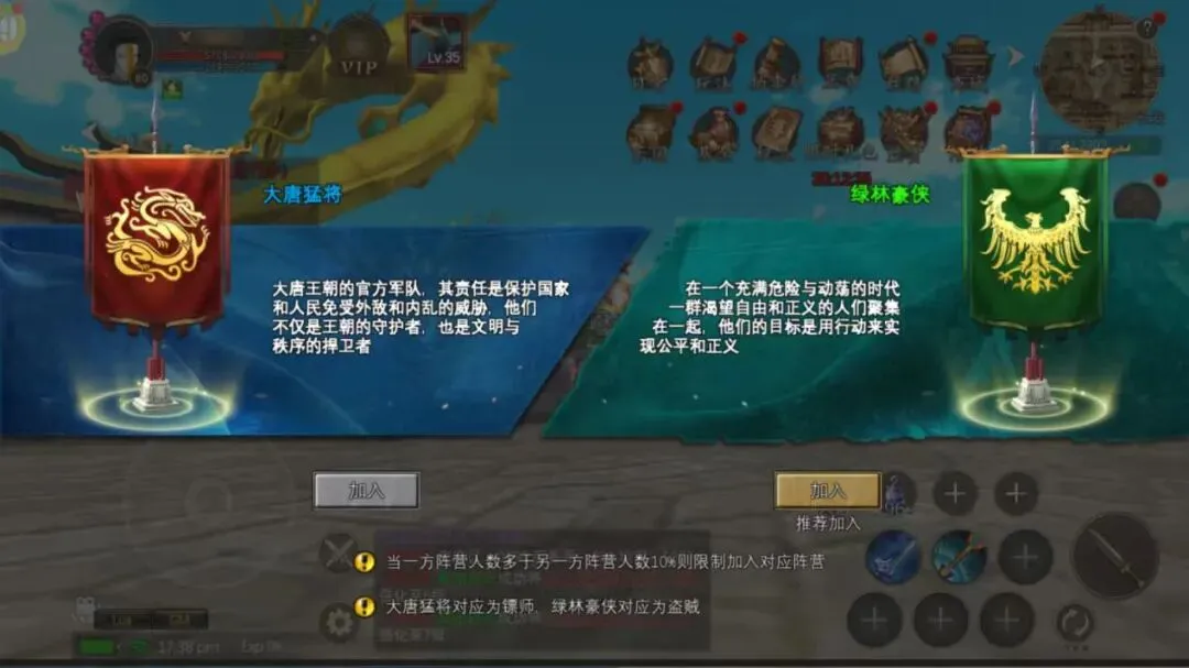 职业与阵营的选择直接决定开局节奏,选对方向少走弯路!零氪玩家首选镖师、长枪辅助职业,操作门槛低、生存能力强,组队刷本全程无压力,是副本开荒的刚需角色;魔弓箭手主打远程高效清怪,微氪即可快速成型,轻松解锁极致输出快感。阵营方面,大唐阵营主打安稳押镖、稳步盈利,绿林阵营主打热血劫镖、快意博弈,50级可解锁阵营自由切换功能,无论你想做安稳经商的丝路商人,还是热血对抗的阵营侠客,都能找到适配玩法,开局即领先一步。