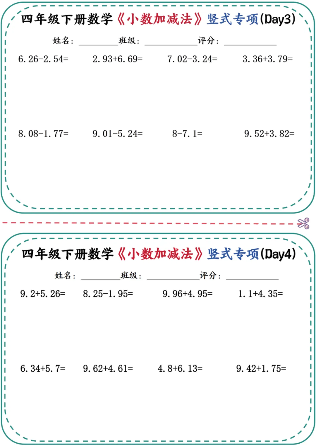 四年级(下)数学 《小数加减法》竖式专项