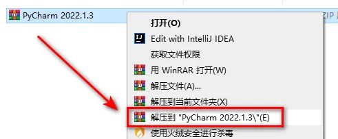 1.鼠标右键解压到“PyCharm 2022.1.3”