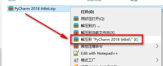 1.鼠标右键解压到“PyCharm 2018”