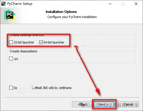 5.勾选与计算机系统相对应的位数,64位操作系统选择64-bit launcher,32位操作系统选择32-bit launcher,点击“Next”
