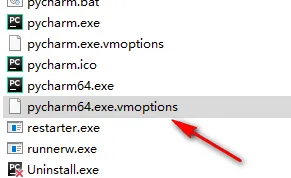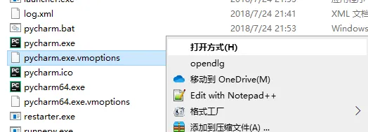 12.在该目录下找到pycharm.exe.vmoptions,鼠标右键点击“打开方式”