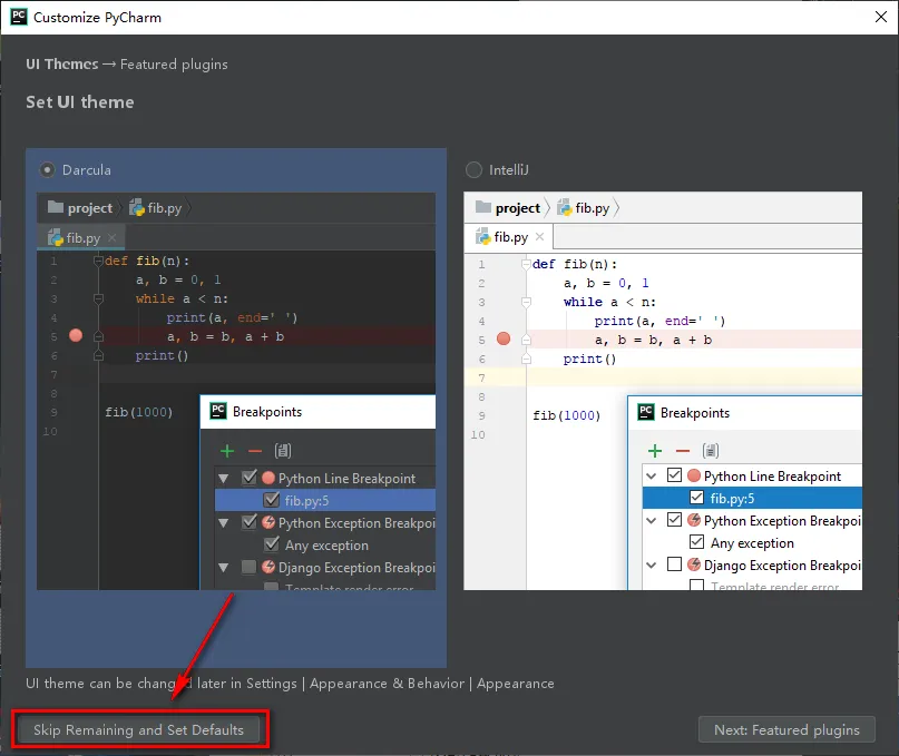 19.点击“Skip Remaining and Set Defaults”
