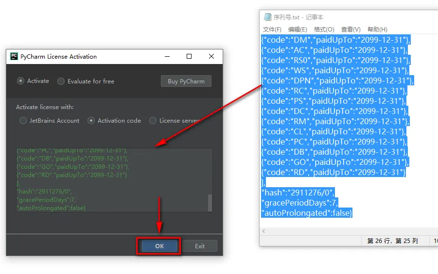21.双击打开序列号 ![]() 22.将激活码全部复制并粘贴到Activation code对话框内,点击“OK”
