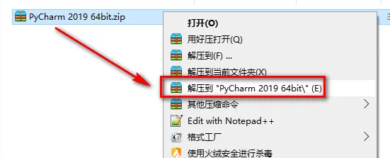1.鼠标右键解压到“PyCharm 2019”