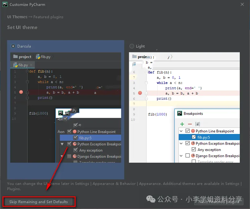 19.点击“Skip Remaining and Set Defaults”