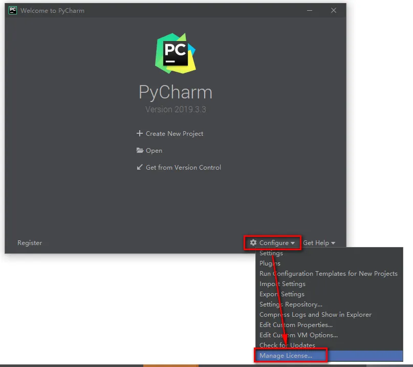 20.点击Configure,选择“Manage License...”